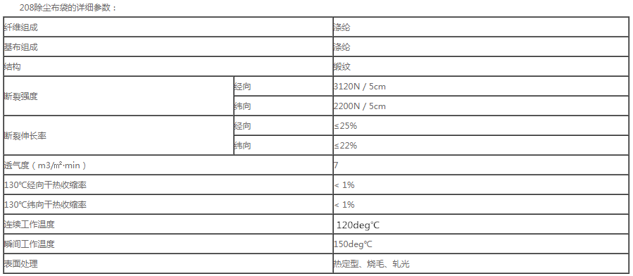 208除塵布袋是目前較理想除塵濾料,具有通氣性能好,除塵效率高,并且有的耐酸,耐堿及耐熱能力,編織過程中采用了多邊拉絨,提高了織物厚度,富有彈性,故除塵效果好,除塵率可達(dá)_。
