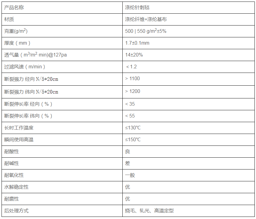 滌綸針除塵布袋選用滌綸細(xì)旦大化纖維絲,以設(shè)備生產(chǎn)滌綸(聚酯)纖維針刺過濾氈,可將多種纖維均勻定量混合,再用多臺(tái)混開棉機(jī)組及梳理機(jī)組利于纖網(wǎng)之間不同纖維間層裝復(fù)合、梯度變換。