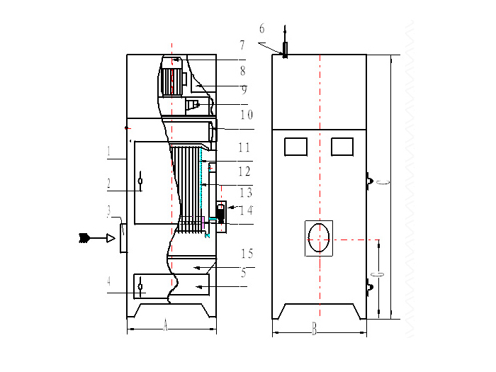 7.該機(jī)組現(xiàn)有十六種規(guī)格,分A、B兩型。A型設(shè)灰斗抽屜、B型不設(shè)灰斗抽屜。下部加法蘭;由用戶(hù)直接配接在折包口料倉(cāng)倒料口,混料庫(kù)、噴砂箱、皮帶運(yùn)輸調(diào)頭處等揚(yáng)塵設(shè)備上除塵,粉塵直接回收。