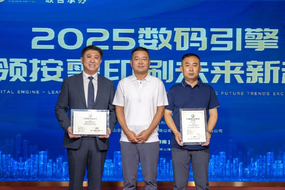 隨后,舉行了備受矚目的C9評價證書頒發(fā)儀式。國際標準化組織/印刷技術(shù)委員會(ISO/TC130)主席、中國印刷科學(xué)技術(shù)研究院黨委書記、院長趙鵬飛親自為山東盈科杰數(shù)碼科技有限公司與濟南東潤印刷有限公司鄭重頒發(fā)C9評價證書。這一環(huán)節(jié)不僅是對兩家企業(yè)在印刷品質(zhì)管控與技術(shù)創(chuàng)新領(lǐng)域突出表現(xiàn)的高度認可,更彰顯了行業(yè)對其推動數(shù)字印刷標準化發(fā)展的肯定,現(xiàn)場掌聲雷動,見證了這一榮耀時刻。